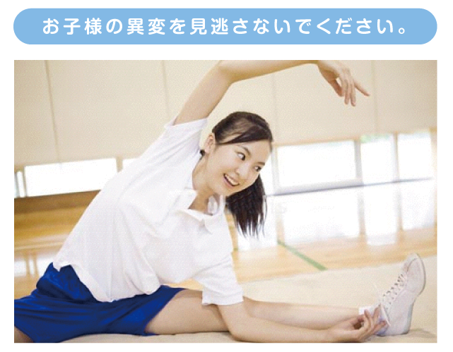 | お子様の異変を見逃すことは、お子様のアスリートとしての可能性を奪うだけでなく、将来、スポーツをするという楽しみ自体を奪ってしまう可能性もあります。 また、自己流のリハビリによって、更に症状を悪化させてしまうという例も少なくありません。 何か異常を感じたら、出来るだけ早い段階でお子様に医師の診察を受けさせること、リハビリは、理学療法士の正しい指導のもとに行うということが大切です。 |